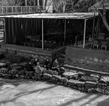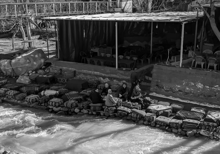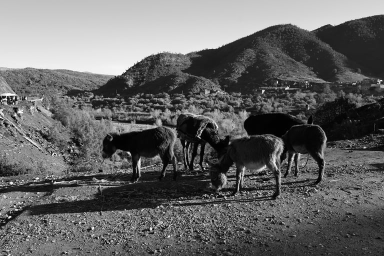 Saturday slowed everything down. It poured with rain, which gave Marrakesh a softer feel. After a long lie, we took a taxi to Majorelle Garden and the Berber Arts Museum. The bold blues and greens stood out even more against the grey sky, and learning about Berber culture added depth to everything I had been seeing around me. El Kemis flea market did not really click with me. It just did not have the same energy, and that was fine. Not every place needs to resonate. Walking back into the Medina later, I saw a donkey for the first time, followed shortly by a tanner man. Moments like that felt raw and unfiltered, like the city was not performing for visitors. It was simply being itself. Rooftop breakfast at Terrasse Bakchich became one of my favourite moments. Sitting above the streets, listening to the city from a distance, gave me space to breathe. Ben Youssef Palace later that day was stunning, and the Photography Museum left a real impression on me. The black and white photographs of Morocco felt powerful, almost grounding, like I was seeing the country through a quieter and more reflective lens. Tea and snacks at La Vanilla finished the day perfectly.